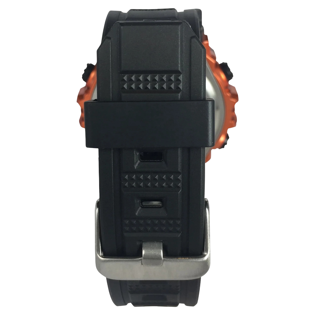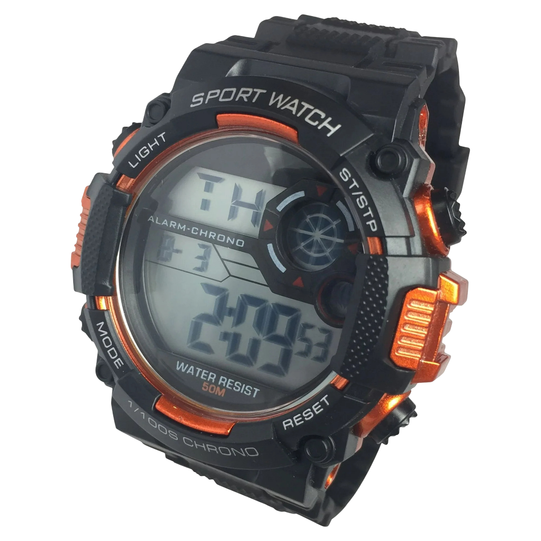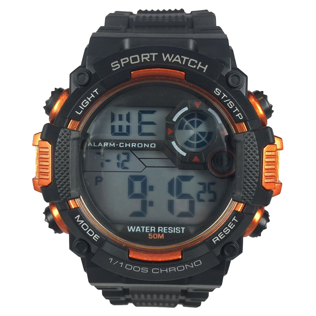 Stay on time and on track with this versatile men’s digital sport watch designed for active lifestyles. Featuring a bold black design with red accents, this watch combines durability with functionality. It offers a stopwatch with split timing, daily alarm, hourly chime, and a bright EL backlight for visibility in low light. With water resistance up to 50 meters, it’s perfect for workouts, outdoor adventures, or everyday wear.